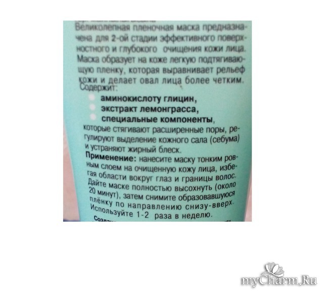 Производитель уверяет, что это Великолепная пленочная маска, которая глубоко очистит кожу лица, а также выровняет рельеф кожи и сделает овал лица более четким.