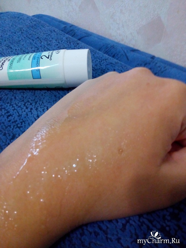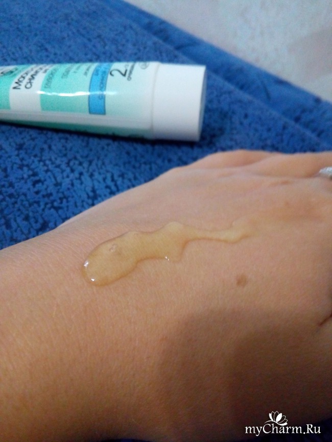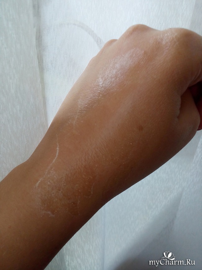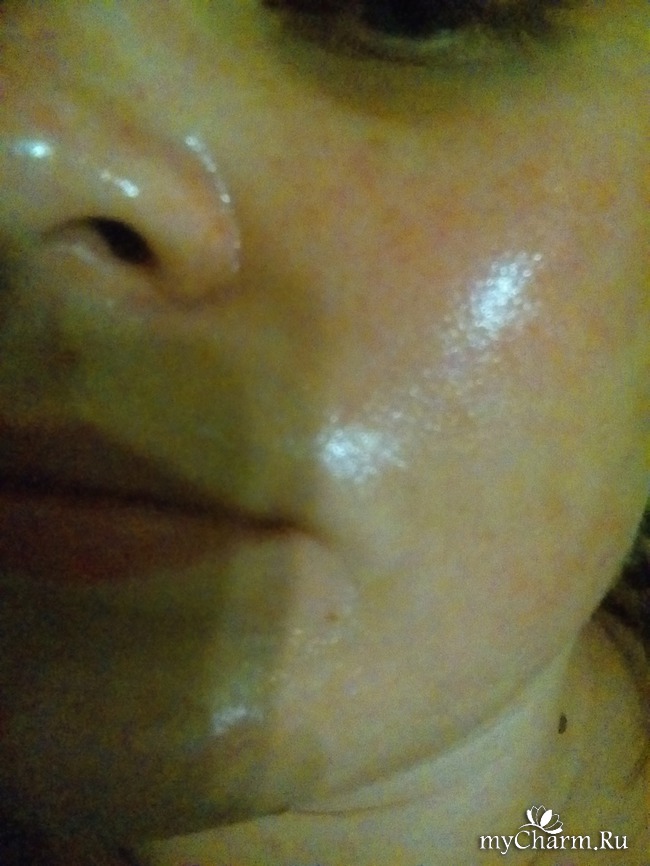 Маска хорошо размазывается по коже и не стекает. Лицо становится блестящим.