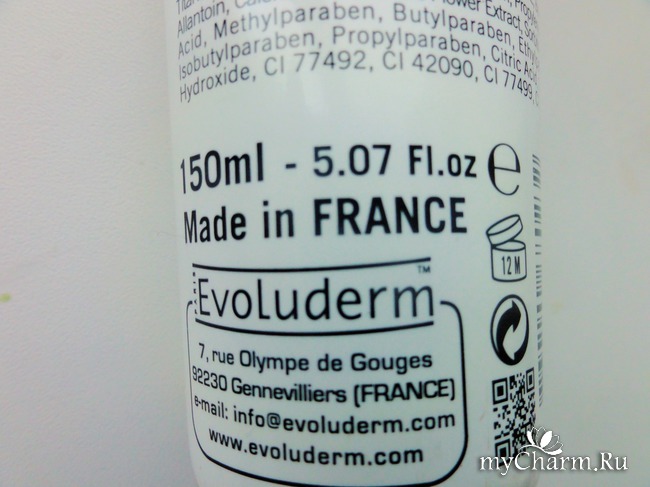 Итак, что это за маска? Внушительных размеров туба емкостью 150 мл французской косметической фирмы EvoLuderm. Туба белого цвета, лаконичный дизайн: надписи и фото кучки белой глины в центре. У тубы широкая, удобная, откручивающаяся крышечка, на которую она прочно встала на туалетном столике. Носик тубы мембраной не защищен.