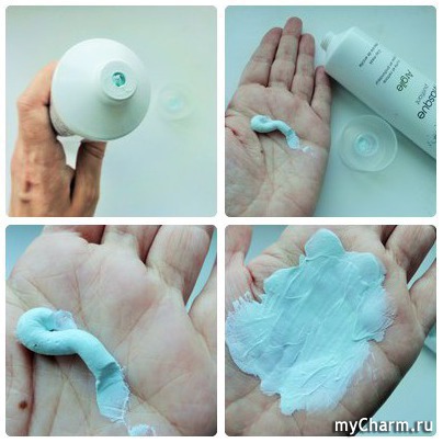 На вид это средство достаточно приятное, нежного голубого цвета с запахом свежести, в меру густой консистенции и легкой текстуры, что редкость для глиняных масок. Наносить ее на кожу даже приятно, такая нежная, она легко распределяется по коже.