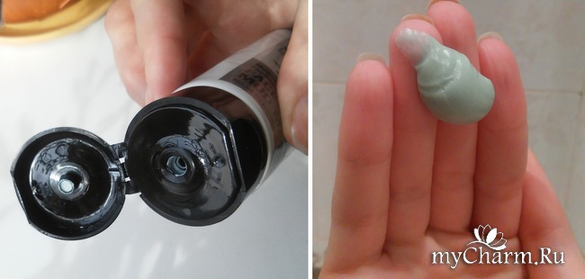 Как только мы начнем выдавливать это средство на руку, уже отметим следующие моменты - у него приятный нежный аромат... Вроде бы это и водоросли, что странно - но он такой сладковатый и правда "морской". Но приятный - это не маска с запахом морской капусты :D