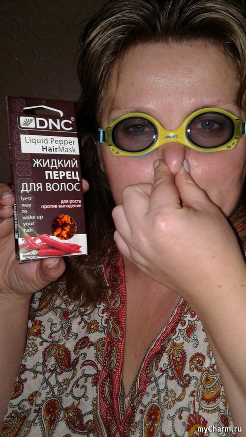 Маска представляет собой красновато-коричневую маслянистую жидкость с резким запахом перца. Честно говоря, принюхиваться я не собиралась, но пока наносишь маску на кожу головы, невольно вдыхаешь её аромат. На этом этапе дыхание от средства не перехватывает, в горле не першит. Но, повторюсь, я старалась не принюхиваться и держала средство подальше от лица.