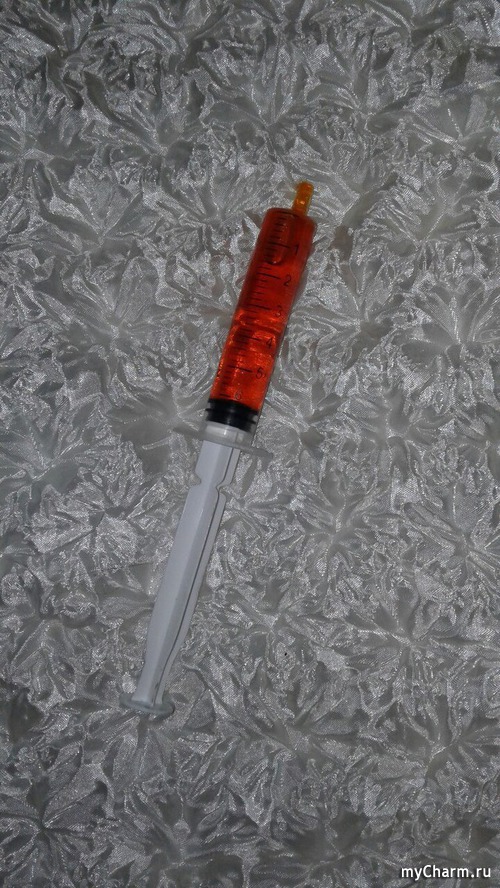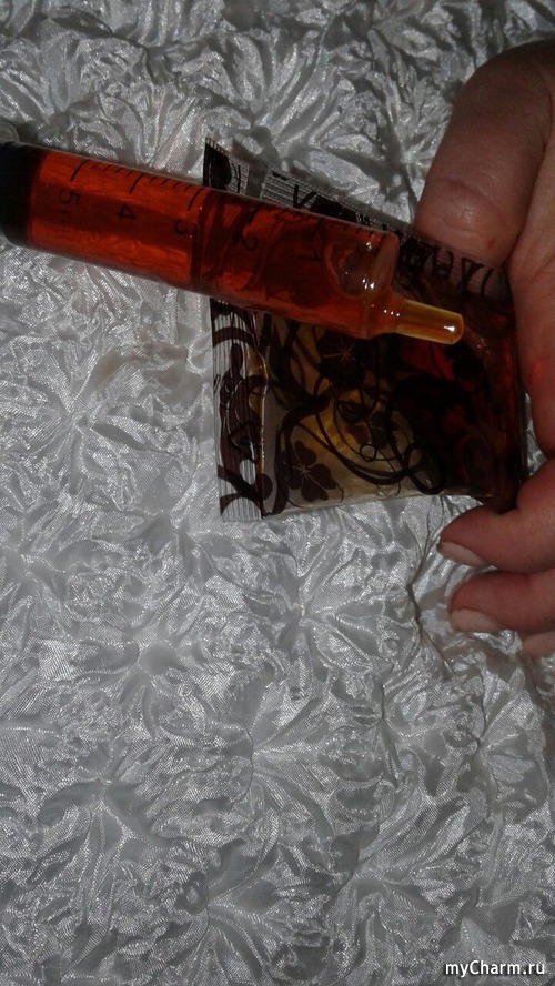 Для этого я воспользовалась одноразовым шприцем без иглы. Сунула шприц в пакетик, набрала в него средство и нанесла на кожу головы, аккуратно дозируя. Очень удобно! Ничего не льётся, не течёт, средство равномерно распределяется по коже и прикорневой зоне волос.