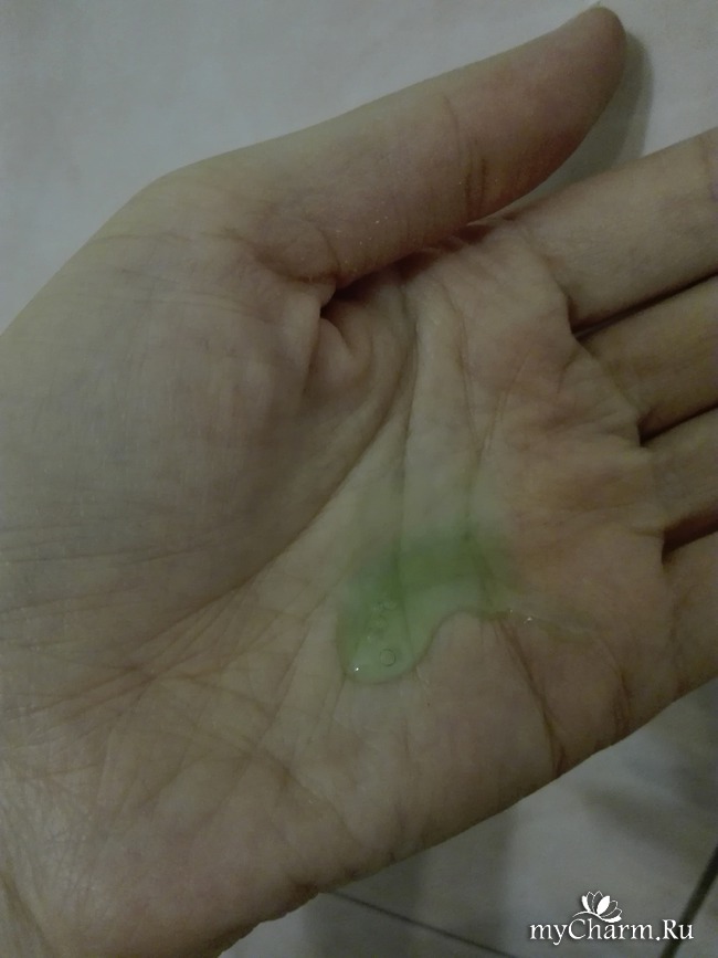 Сам гель светло-зеленого цвета. По консистенции не очень густой.