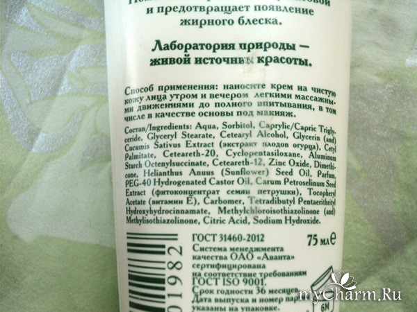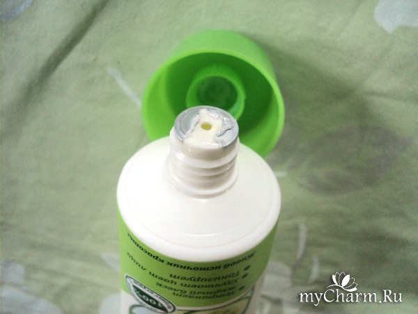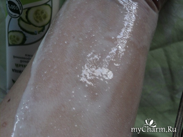 Возможно, именно так все и задумывалось. То есть, бывают такие огуречные лосьоны для тела или лица – жидкие как молочко. Но для тюбика это слишком жидкая консистенция. И, похоже, не очень однородная – есть какие-то пузыри и комочки.
