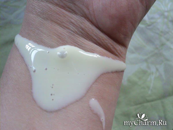 Распределяется по коже тоже очень странно, с какими-то хлопьями. И не впитывается первые секунды вообще.