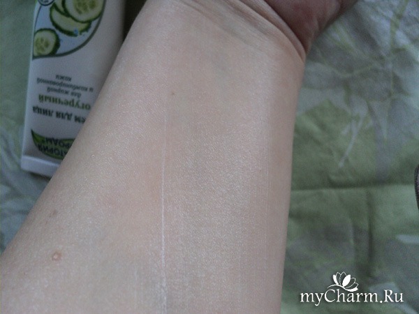 Итак, долгожданный запах свежего огурца. Он есть!!! Ура, это то, что я и хотела, и что я ожидала от огуречного крема. Даже под запаянной крышечкой чувствуется свежий огурец.