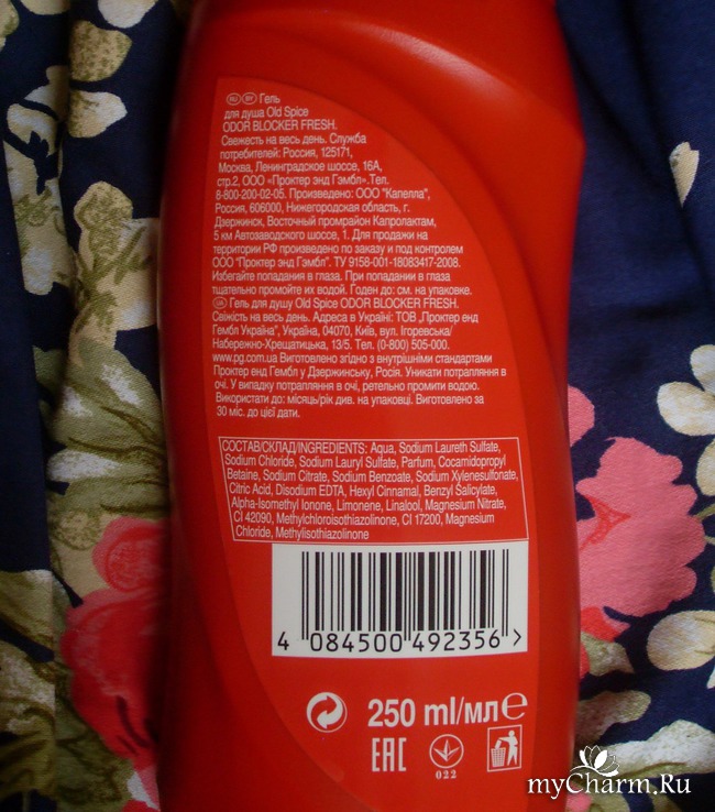 Гель для душа Old Spice выпускается в небольшом формате – всего 250 мл. Флакон со средством средней величины, одна сторона которого оформлена срезом, чтобы было удобно держать его в руках. Дизайн геля, как и положено мужским средствам, в минималистическом стиле. Здесь нет громких обещаний и высокопарных слов, как при оформлении женской косметики - все четко и по существу.