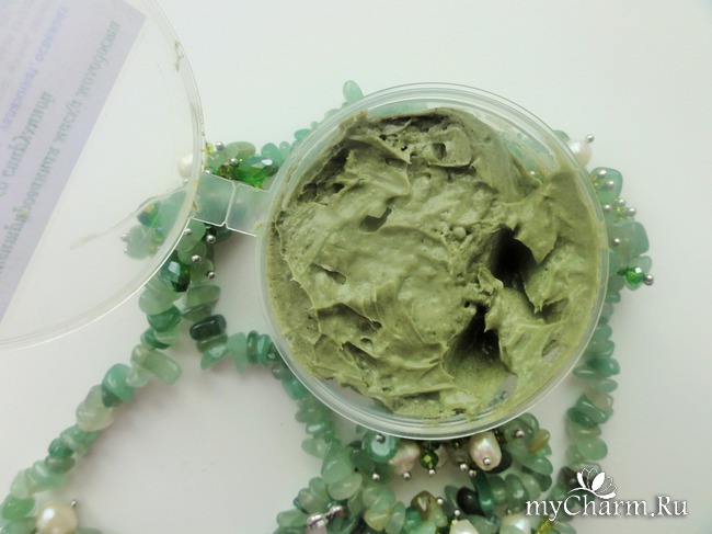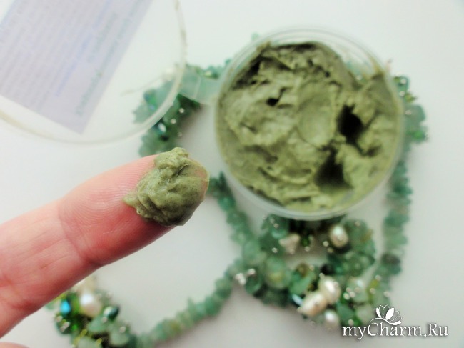Цвет у маски насыщенный зеленый, есть темные точечные вкрапления. Какого-то сильного аромата эта маска не имеет, как не имеют его и почти все средства Оликосметикс, только едва уловимый нежный травяной шлейф, я бы так сказала.