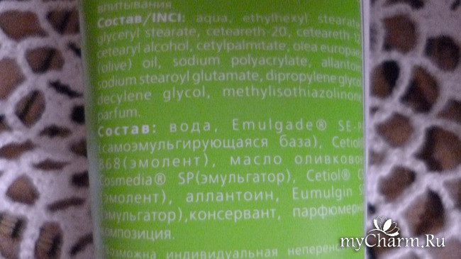 Крем имеет очень легкую консистенцию, которая быстро впитывается, практически без следа. Свежий парфюмированный оливковый аромат остается на коже еще в течение 10-15 минут. Так, что, есть время, чтобы насладиться наиприятнейшим ароматом этого средства!