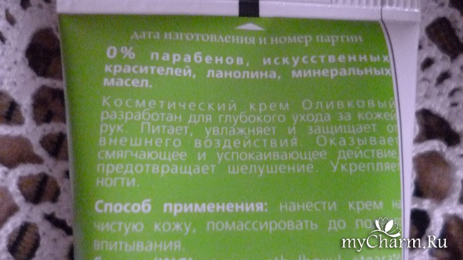 Эстетичное оформление тубы, в ярко-салатовом цвете, действительно, подчеркивает наличие «оливковых мотивов». Непосредственно, на упаковке можно видеть, что средство предназначено именно для чувствительной кожи рук.