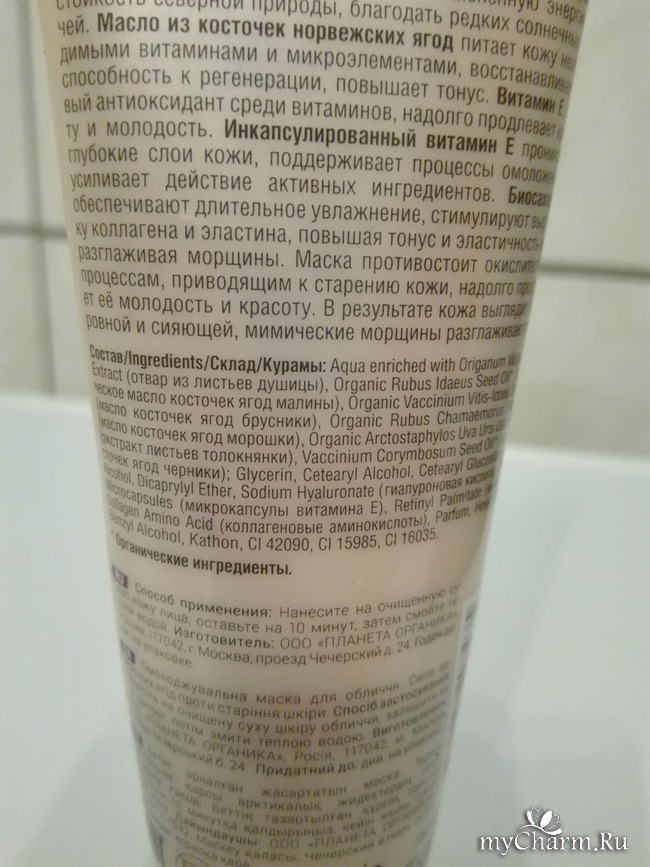У Планеты Органика имеется много различных масок, именно эта мне понравилась своей надписью на тюбике «Сила арктических ягод против старения кожи». После 30 лет я стала покупать такие средства.