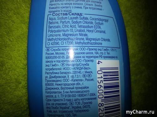 Что же с составом? Парабены и силикон исключаются, о чем упоминается в верхнем углу упаковки. Всего в составе не так много компонентов, что в принципе неплохо. Однако, разрабатывая средство специально для детей, производитель почему-то оставил в составе вредные тетрасодиум ЭДТА, кокамидопропил бетаин (вызывающий, кстати, раздражение век), метилхлороизотиазолинон (провоцирует аллергию – более того, он запрещен в использовании в косметике с 16 июля 2015 года). Вот-те здрасьте, называется! А еще такой опытный гигант в моющих средствах, как Проктер энд Гэмбел!