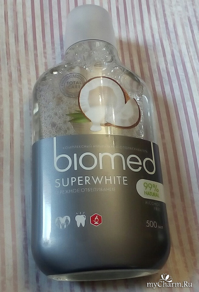 Сегодня я хочу рассказать о своём помощнике. Знакомьтесь: Комплексный натуральный ополаскиватель "Superwhite" от бренда Biomed: