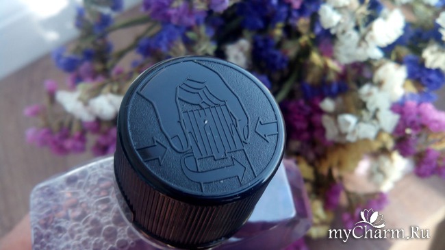 Мне понравилась крышка флакона. Изначально она была защищена пленкой. Открывается она не просто, для этого надо нажать на специальные гладкие места сбоку крышки. При этом надо приложить силу, но открывается крышка легко.