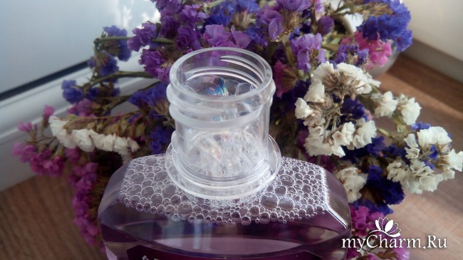 Сам флакон сделан из прозрачного плотного пластика и его удобно держать в руке.