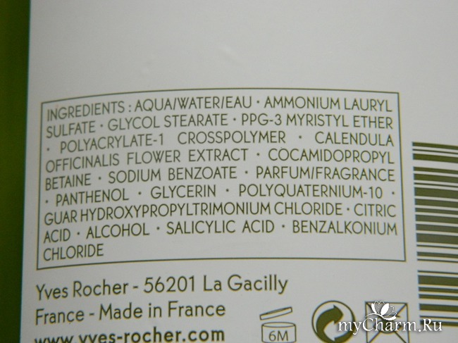 Здесь вы не увидите силиконов, парабенов, SLS и SLES – в этом громаднейший плюс косметики от Ив Роше. Производитель пишет о составе следующее: