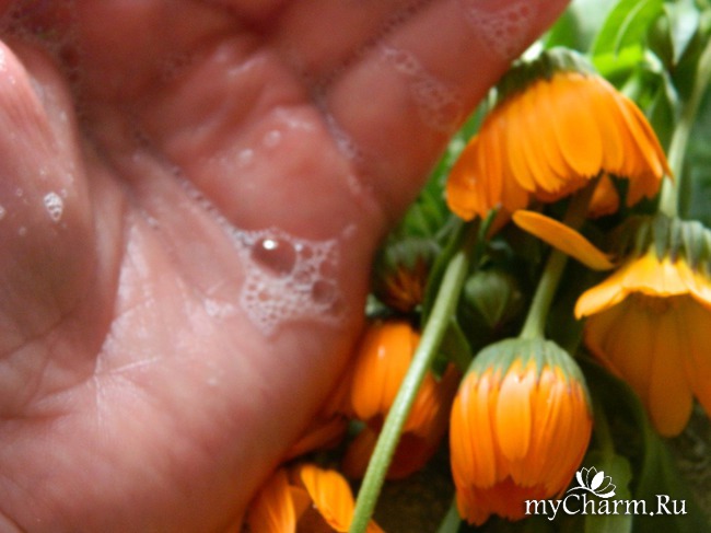 Аромат… Вот тут, на мой взгляд, недочет. По сути, если шампунь с календулой, он должен ею и пахнуть. Ничуть не бывало!