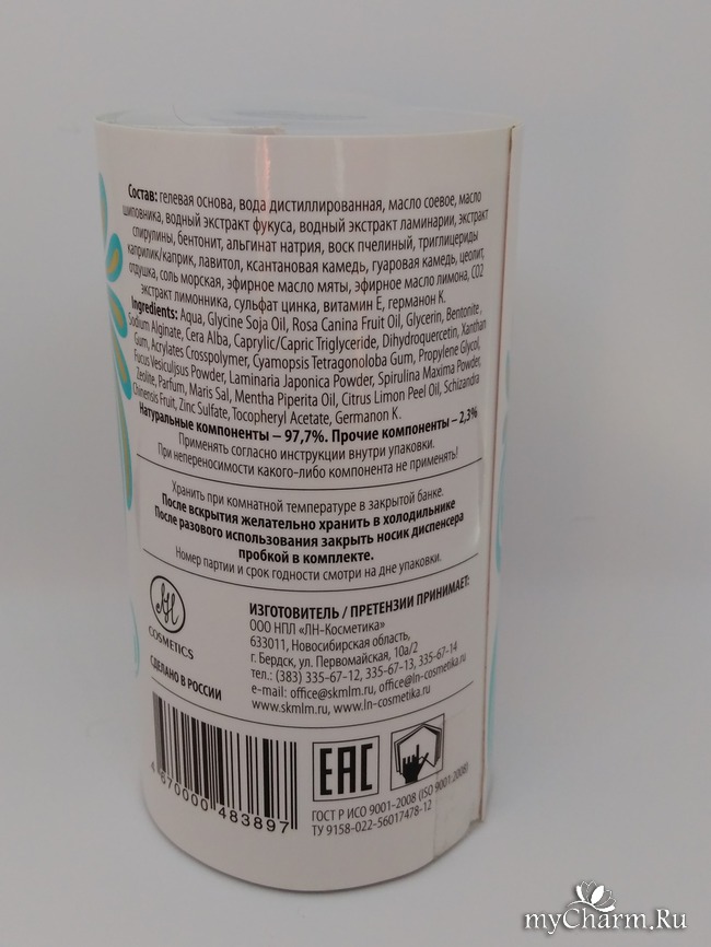 Состав маски «Талассо-фреш» весьма интересный, с большим содержанием (97,7%) натуральных компонентов. Поэтому после вскрытия флакон следует хранить в холодильнике – так вы сможете быть уверены, что средство сохранит все свои полезные свойства.