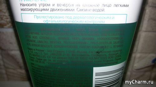 Аромат – легкий, свежий, практически без запаха, с еле уловимой ментоловой ноткой. После умывания он держится на коже еще около часа. Кстати, этот ментол в основном и исполняет роль мощного освежителя. Сначала кажется, что наносишь абсолютно нейтральное, обычное средство для умывания, а при смывании лицо приятно холодит ментоловым шлейфом, который отлично освежает и даже бодрит (перед сном как-то не в тему, зато утром – самое оно!).