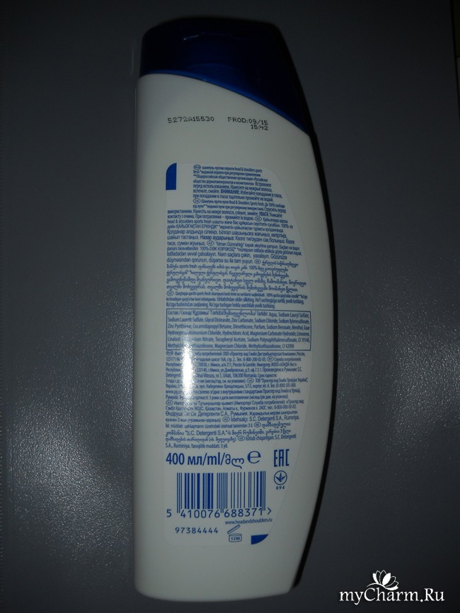 Флакон объемом 400 мл имеет традиционную для всех шампуней Head & Shoulders форму и, как всегда, оснащен яркой синей крышечкой. А на этикетке красуется добрая половина футбольного мячика, что вполне логично, ведь название у средства сугубо спортивное! И это вовсе не означает, что перед нами шампунь с экстрактом футбольного мяча!