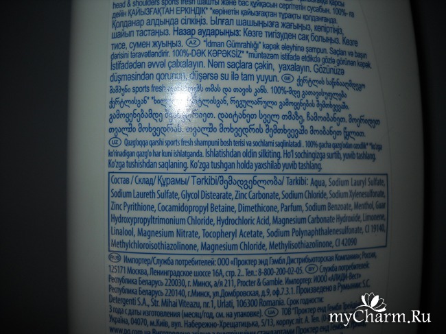 На обратной стороне флакона можно увидеть довольно информативную наклейку, содержащую более подробную информацию о шампуне. Здесь указаны все мыслимые и немыслимые контакты производителя, информация о дате производства и о сроке годности продукта, который традиционно составляет три года с даты производства, а также сведения о том, как пользоваться шампунем, и, конечно же, его состав.