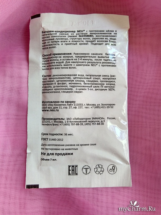 Ко всему прочему в посылке лежало 4 пробника бальзама-кондиционера для волос NEU* Kosmetik.