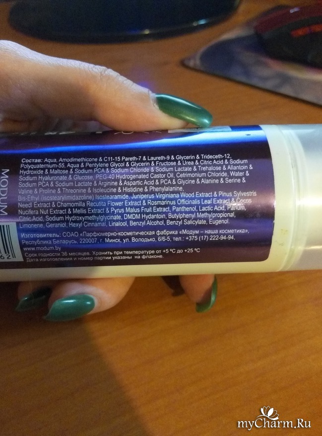 Перейдем к самому продукту. Фирма Modum для меня не новая, продукция мне нравится. Радует, что белорусские производители не отстают от брендовых и дорогих производителей. Серия healthy happy hair на глаза мне не попадалась. Она небольшая состоит из трех видов шампуней, двух масок, смываемого кондиционера и кондиционера-термозащиты.