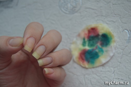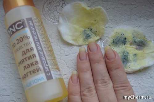 А одного диска и два смачивания вполне достаточно для снятия всего покрытия. Поэтапные фото: