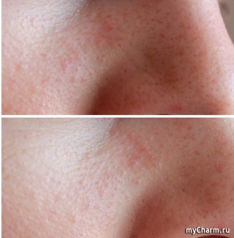 Кожа действительно увлажнена на все 100 процентов. Сразу же после нанесения она становится бархатистой и очень нежной. Что касается моей вечной проблемы - покраснений в области Т-зоны, то они значительно уменьшились, а поры заметно сузились. Сорбет действительно отлично успокаивает кожу и выравнивает цвет лица. На этом фото вы и сами можете увидеть результат. И это всего лишь после двух недель применения.