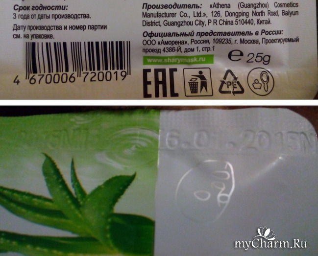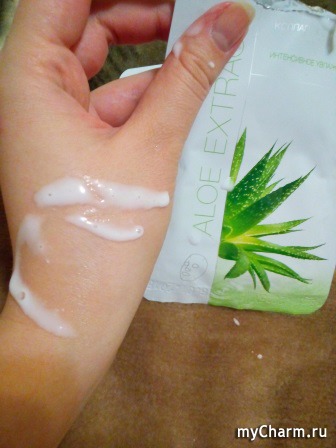 Маска представляет собой небольшой саше-пакетик белого цвета с изображением растения Алое и зелеными и серебряными надписями. Еще в нижнем левом углу есть схематическое изображение того, что маска является тканевой. Я уже пользовалась масками такого типа других производителей. Мне понравилось. С косметикой данной фирмы встретилась впервые.