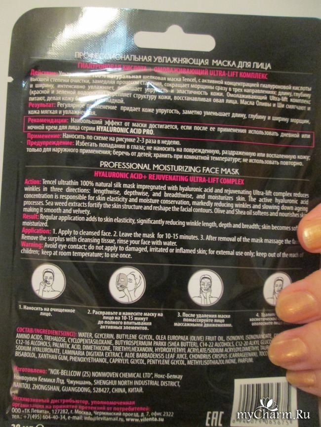 Маска для лица профессиональная увлажняющая Гиалуроновая кислота + омолаживающий Ultra-lift комплекс от VILENTA подходит для любого типа кожи. Особенно обратить внимание на нее следует тем дамам, у которых кожа лица и шеи обезвожена и чувствительна.