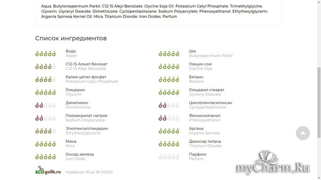 Не смотря на то, что крем не относится к серии "Органик", я все же ради любопытства взглянула на натуральную составляющую состава, и тут была удивлена, что большая часть натуральные масла и элементы. Всего 4 компонента синтетические, и они у меня не вызвали раздражения, даже на очень шершавую кожу.