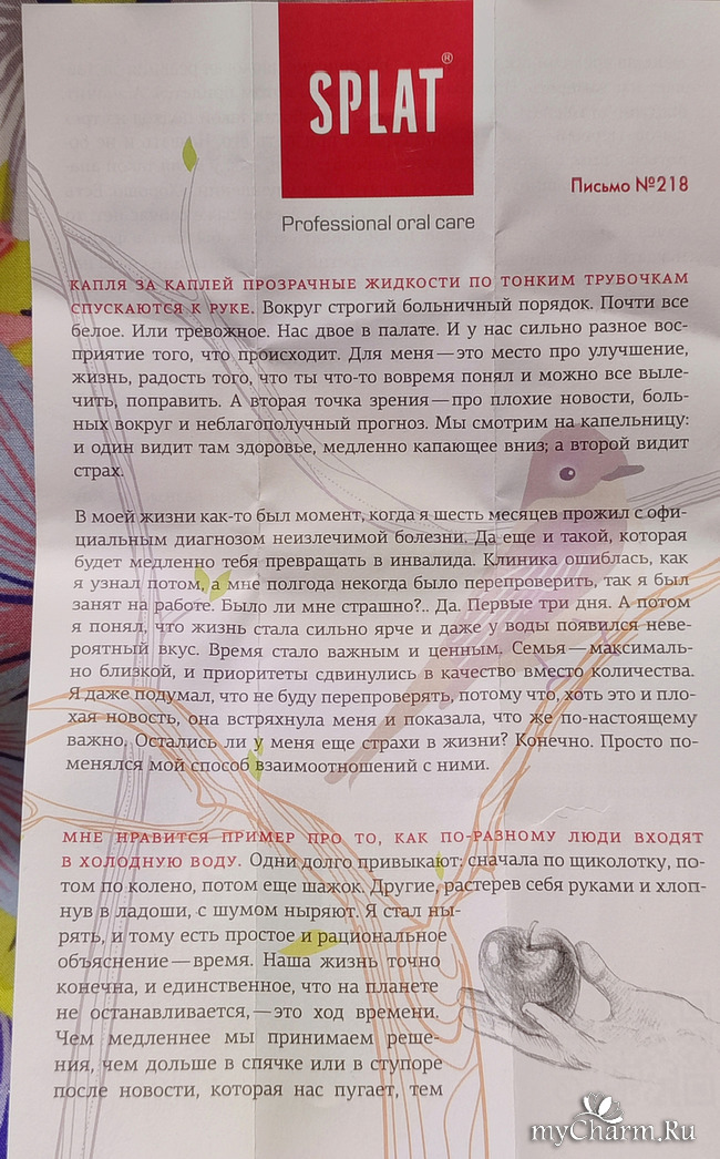 В каждой упаковке с пастой идет вот такое письмо – послание от директора компании. Интересные примеры и рассуждения.