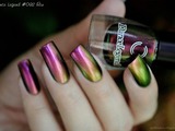 Лак представляет собой мультихромный металлик, который переливается от малинового оттенка до яркого зеленого. Это невероятно красиво, лично мне постоянно хочется смотреть на ногти и наблюдать за изменениями лака.