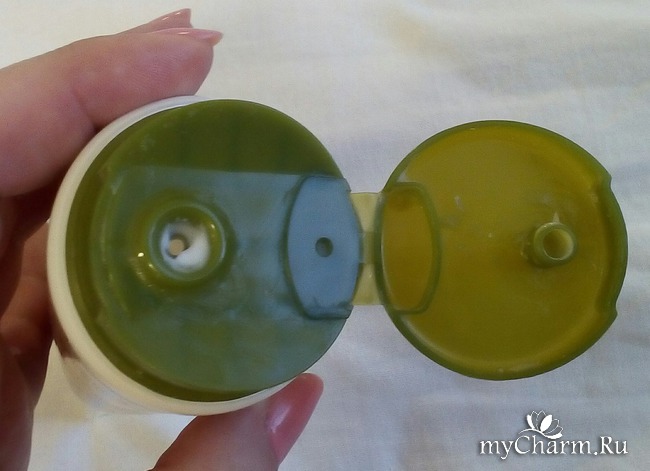 Венчает тюбик достаточно большая зелёная крышечка с откидным верхом. На крышке есть впадинка под палец, для облегчения вскрытия. Открывается крышечка с характерным щелчком. Но чтобы открыть, нужно приложить некоторые усилия. Вообще достаточно часто у товаров именно этого производителя крышечки закрываются очень плотно. С одной стороны - это гарантия того, что содержимое не сбежит при перевозке, а с другой - всегда переживаю за маникюрчик)