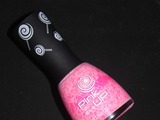 На стеклянном флаконе подробно указана информация по составу и нанесению лака. Флакон как и полагается стеклянный с резиновым держателем черного цвета, украшенным узорным изображением карамелек на палочке. Кисточка вполне удобная, хотя у более дорогих конкурентов встречаются плоские и податливые кисти, к которым не придерешься.