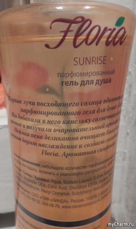 А тут мне опять повезло – подарили целый наборчик такой продукции, одним в составе является парфюмированный гель для душа Sunrise от фирмы Floria.