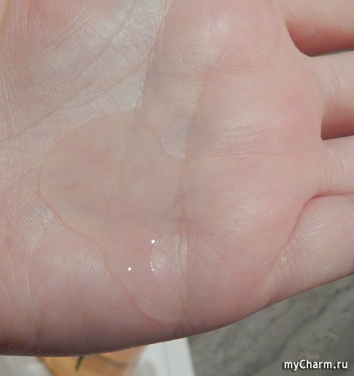 Гель светло-желтого цвета, я бы даже сказала, прозрачный. Текстура средства, на мой взгляд, жидковата по сравнению с обычными гелями.