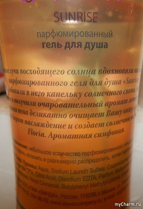 Мне подарили парфюмированный гель для душа «Sunrise» в переводе с латинского буквально «восход солнца».