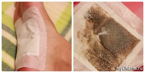 Из-за выделяемой влаги и действия активных ингредиентов (производитель отмечает, что именно в период полного расслабления детокс-патчи активнее всего вытягивают токсины) они прилично потемнели, а явный аромат полыни чувствовался даже через мой немного заложенный нос. Но если их использовать курсом, то цвет патча будет светлеть с каждым разом. На снимке запечатлены патчи после первого применения. Как видно - цвет довольно интенсивный, надо полагать токсинов у меня в организме скопилось немало). А вот после следующего раза они действительно стали чуточку светлее.