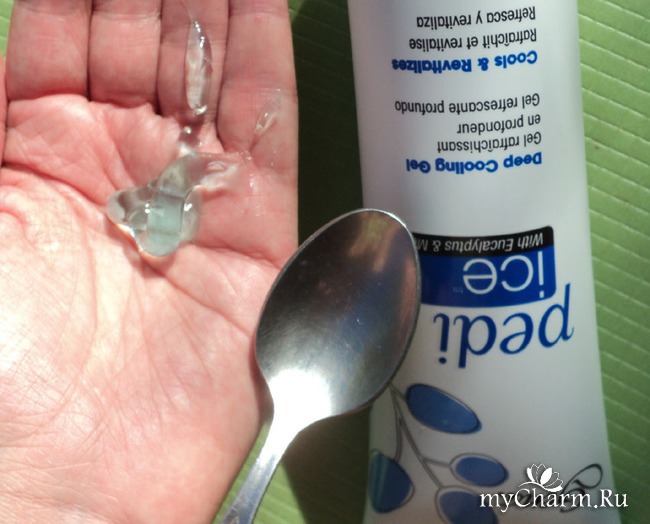 Наносить можно сразу на сухую кожу, предварительных ванночек не потребуется. Легко распределяется по коже, без усилий. Консистенция податливая, приятная. Охлаждающий эффект ощущается моментально.