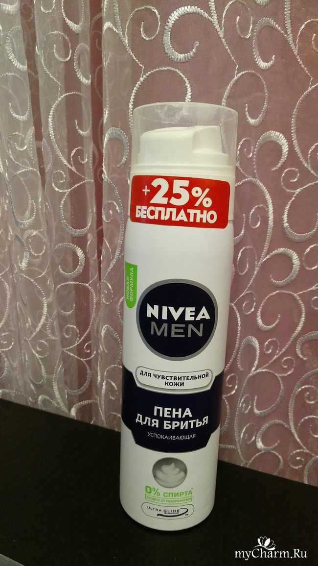 И вот как-то давным-давно, пару лет назад, я купила специально для него пену для бритья, на которой было указано, что она предназначена специально для чувствительной кожи, успокаивающая от Nivea Men. Привлекла так же надпись, что там 0% спирта. В итоге, дружеские отношения с пеной сложились не только у моего супруга, но и у меня. Поэтому спешу поделиться нашими общими впечатлениями.
