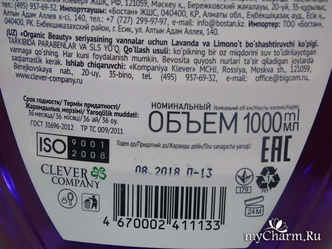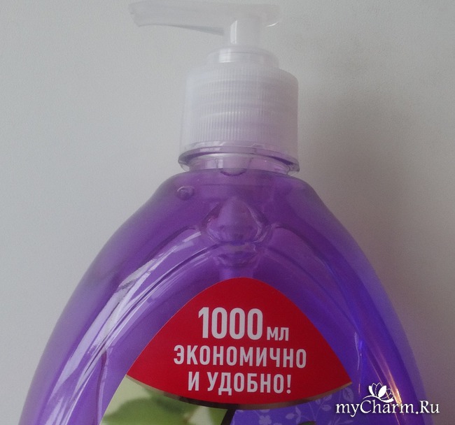 Первое, что привлекает внимание, когда смотришь на него - это крупная надпись на лицевой стороне этикетки: 1000мл. ЭКОНОМИЧНО И УДОБНО!