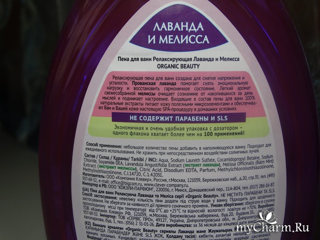 Но я предлагаю вам более тщательно познакомиться конкретно с таким средством, как "Пена для ванн лаванда и мелисса" от бренда ORGANIC BEAUTY.