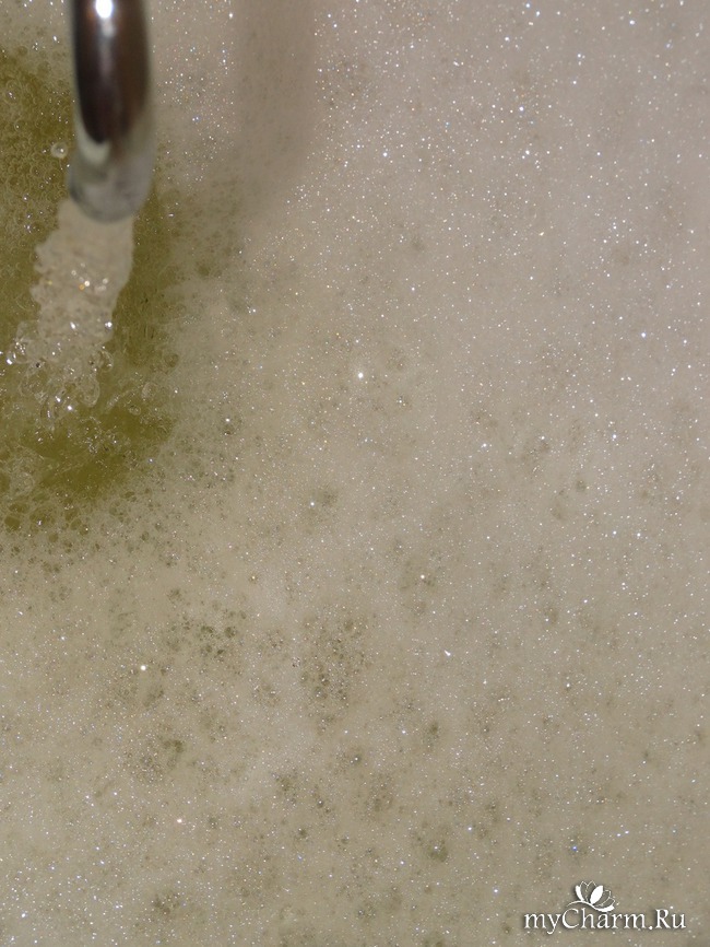 Я сделала для начала три нажатия (прямо в воду) и стала наблюдать, как появляется пена. Надо сказать, "дело пошло" отлично!