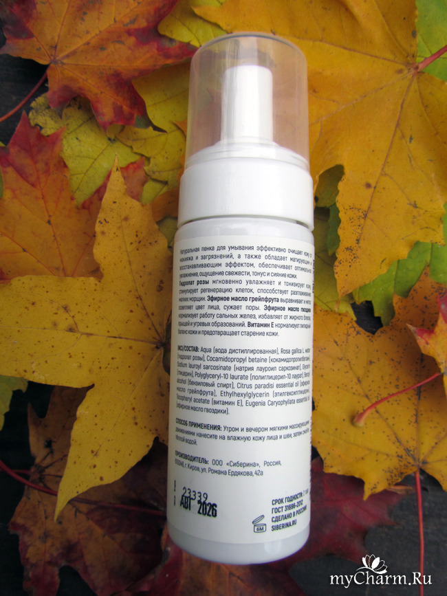 Хочу рассказать вам о средстве для умывания от компании Siberina о пенке для умывания «Снятие макияжа, матирование и уход» с гидролатом розы.
