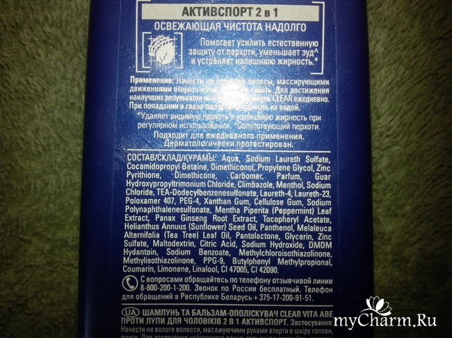При длительном применении шампуня производитель обещает, что естественный защитный слой на коже головы будет активирован, чтобы препятствовать возникновению перхоти и излишней сальности. Как и большинство шампуней, Clear Vita Abe Men можно использовать ежедневно. Это и советует делать производитель. Есть и пометка о том, что шампунь дерматологически протестирован.