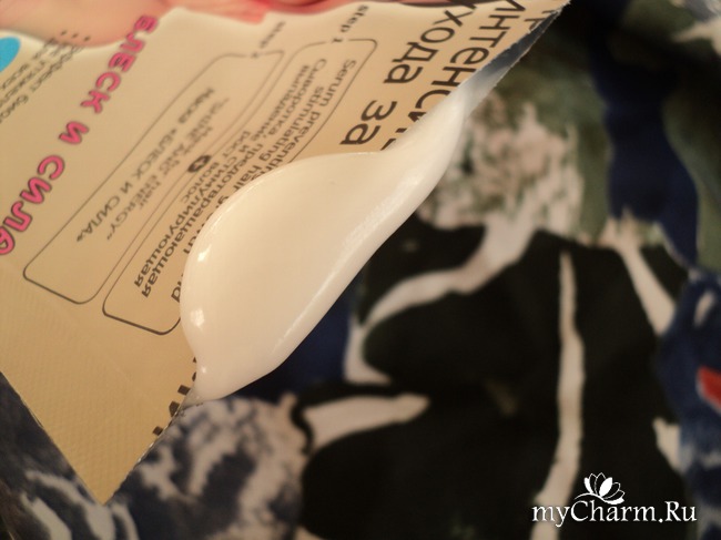 Итак, маска Программа интенсивного ухода за волосами «Блеск и сила» заключена в упаковку, разделенную на два мини-пакетика. В верхнем пакетике содержится сыворотка, способная предотвратить выпадение и стимулировать рост волос, в нижнем – маска, защищающая от повреждений и обеспечивающая гладкость. На упаковке имеется вся интересующая потребителя информация, а именно свойства, эффективность, способ применения, меры предосторожности, состав и пр. Приятно, что производитель позаботился о российских потребителях, и вся информация представлена на русском языке. Досконально изучив упаковку, я, наконец, приступила к использованию маски. Как и предыдущий оратор, получивший маску от Skinlite и разместивший подробный обзор, я озадачилась вопросом, на влажные или сухие волосы наносить продукт?! Предположила, что на мокрые, и отправилась мыть волосы.