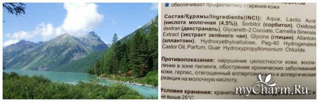 С одной стороны расписаны активные компоненты, входящие в состав, и их действие на кожу: